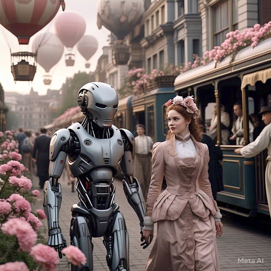 Entonces, en medio del bullicio de la ciudad, lo ve. Un reflejo de su destino, otro ser de acero, pero con algo en su mirada que la inquieta. No es solo reconocimiento… es anhelo.